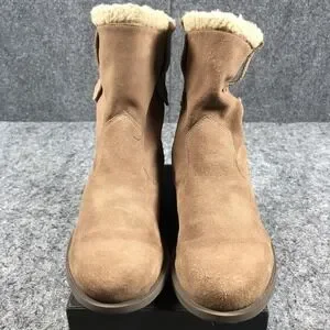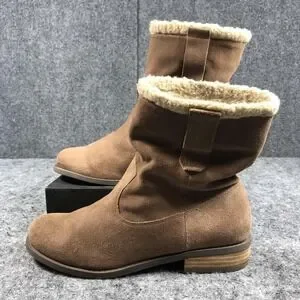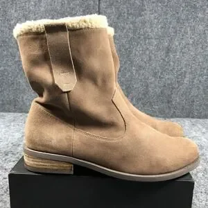 Sole Society Shearling Lined Boots Womens Brown Suede Pull On Ankle Mid Calf