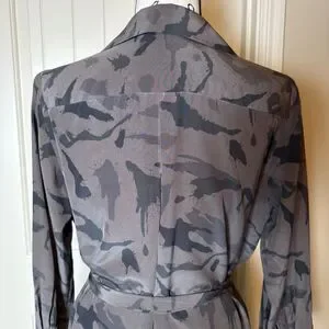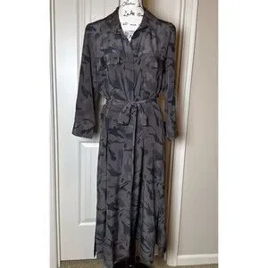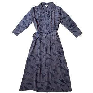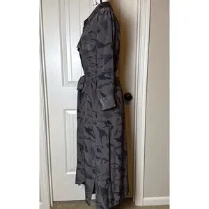 The L Agence Button Front 3/4 Sleeve Abstract Silk Dress in purple, size medium offers a luxurious and stylish designer piece for women. Made from silk, this full-length dress features a unique abstract pattern, a collar neckline, and a button closure. It has a flattering fit making it suitable for many occasions. The dress is perfect for the spring and summer seasons and comes in a beautiful muted color, adding a touch of elegance to any wardrobe.