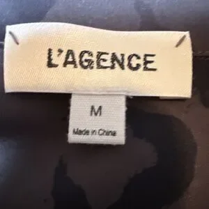 L Agence Button Front 3/4 Sleeve Abstract Silk Dress Purple Size M Designer Luxe
