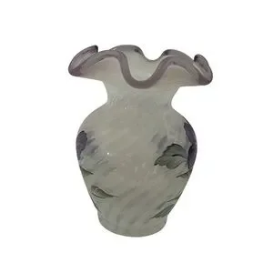 Fenton Art Glass Spiral Optic Opalescent Fluted Edge Lilac Crest Hand Painted Vase. Signed