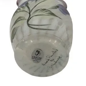 Fenton Art Glass Spiral Optic Opalescent Hand painted Vase.