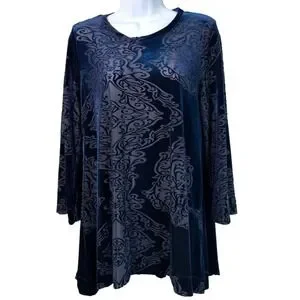 Nally and Millie Womens Velvet Burnout Tunic Top Sz M Sheer Boho Artsy Feminine