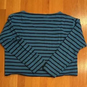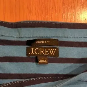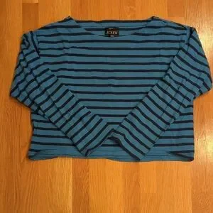 J. Crew Preppy Nautical Coastal Beach Large cropped boat neck Blue Stripe Top