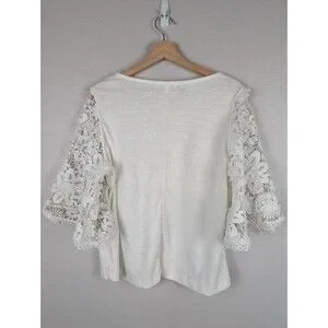 Anthropologie Eli Ari Lace Bell Sleeve Top Blouse White Medium