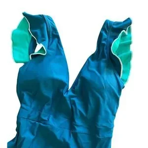 Summersalt The Ruffle Backflip One Piece Swimsuit Teal Blue Green Womens 4LT