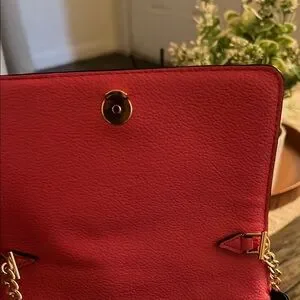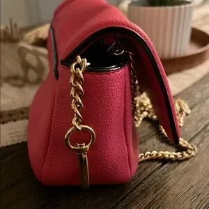 Elevate your style with this chic red shoulder bag. Featuring a sleek design and gold chain strap, it's perfect for any occasion.
