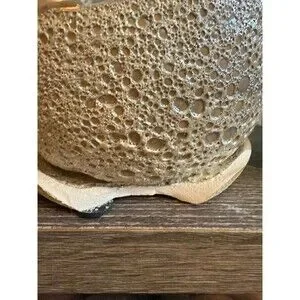 Modern ceramic planter with a unique bubble-textured base and smooth glazed top. Comes with matching saucer. Note: planter has visible cracks and chips.