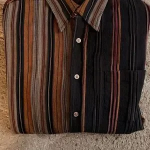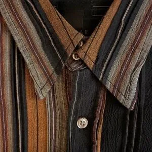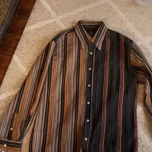 Elevate your style with this men's striped shirt featuring a classic black and brown color combination. Perfect for any occasion.