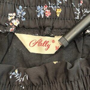 Alelly Floral Tiered Mini Skirt M Black Ruffle Boho Cottagecore