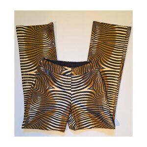 These Joseph Ribkoff statement pants, bold, rare, and absolutely stunning. Featuring a hypnotic metallic zebra swirl pattern in gold, bronze, and black with a subtle snakeskin texture that shimmers under light. A true runway-worthy vintage piece that blends high-end glam with 90s clubwear energy.