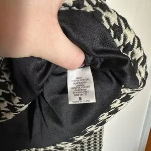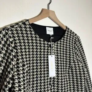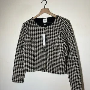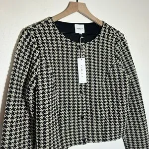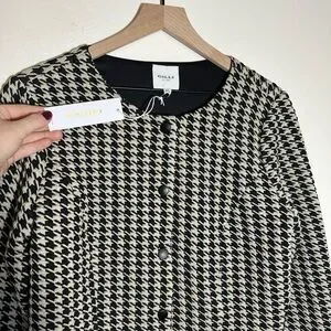 Stylish houndstooth pattern. Button-down front. Versatile and chic.