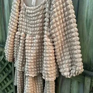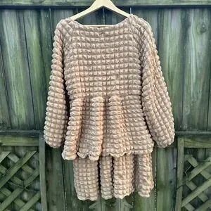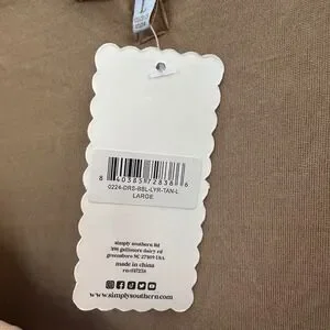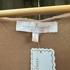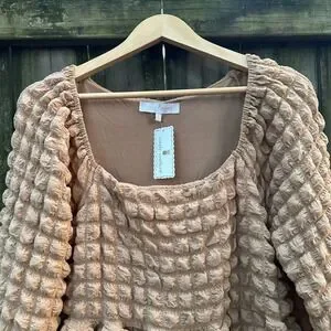 NWT Simply Southern Long Sleeve Tiered Bubble Mini Dress Puff Tan Brown Sz Large