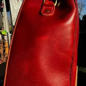 Elevate your style with this chic leather crossbody bag. Its bold color and sleek design make it a perfect accessory for any outfit. Rosso in color, she has amazing color pull-up and other wrinkles and character marks. She hasn’t been completely unpacked. There are two inside pockets, adjustable and removable strap so you can customize! There’s also a pair of magnetic straps to hold it together at the top. An organizer will fit inside, you can put your own grab strap or guitar strap on and add flair and then she’s totally customized for you. PLG is full grain unlined leather. If you know, you know.