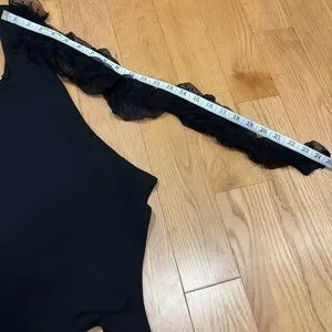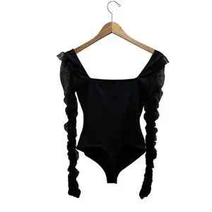 Featuring a delicate sheer sleeve with ruffle shoulder