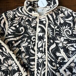NWT Storia Quilted Jacket Sz M Paisley Printed Black Beige Grannycore