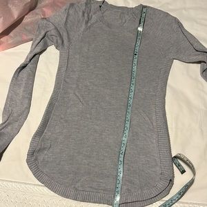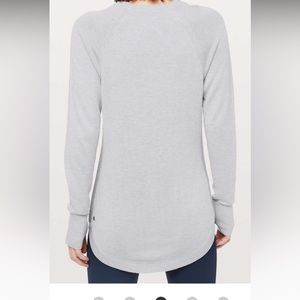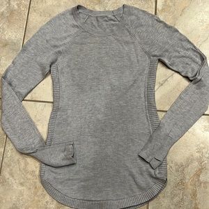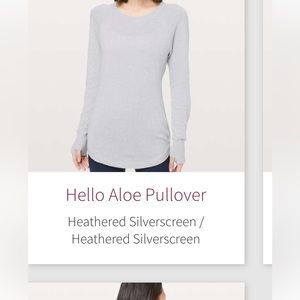 Lululemon Hello Aloe sweater, used in good condition, size small. Experience real softness in this sweater designed to take you from travel to work and everywhere in between. A touch of aloe vera blended with rayon and silk adds softness. soft features Designed for: Office Travel Commute Thumbholes: Help keep your sleeves in place and hands warm Extra coverage : Curved hem keeps your bum covered Slim fit: Fits close to the body.