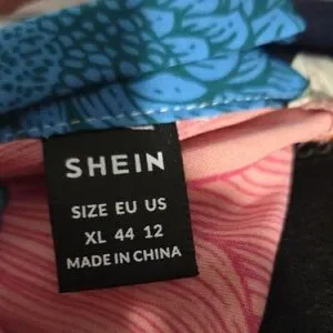 Bold floral print mock neck top by SHEIN. Short sleeves with vibrant oversized blooms. Mix of bright and contrasting colors. Easy statement piece for casual styling.