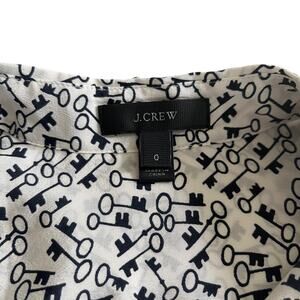 J.Crew Women’s White Silk Button-Up Shirt – Black Key Print, Club Collar Size 0