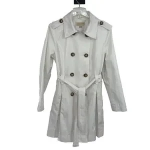 Michael by Michael Kors Women L White Trench Spring Coat Old Money Quiet Luxury