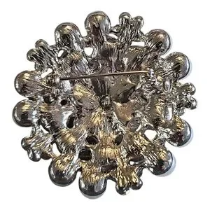 Elegant white faux pearl and crystal cluster brooch. Features lustrous white pearls accented by sparkling clear crystals. Adds a refined, feminine touch to jackets, dresses, and scarves. Secure pin closure for easy wear.
