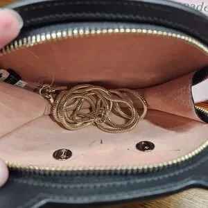Exterior back gold foil logo. Removable snake chain with 21" drop.