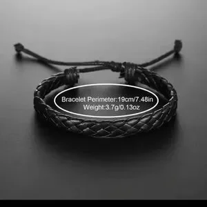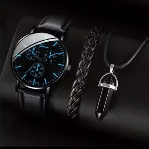 Men's Watch Bracelet Set Leather Necklace Braided Black New f76