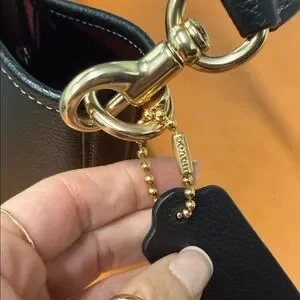 Sleek black leather design. Gold-tone hardware. Perfect for everyday use.