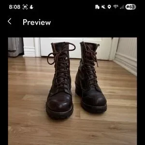 FRYE Rugged dark brown leather boots. Lace-up design with sturdy soles. Perfect for a bold look.
