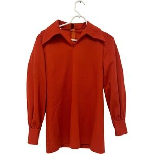 Blouse Womens Size Small Orange Collared Regular Fit Halt Zip Back Long Sleeve