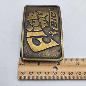Vintage 1980s Flick My BIC Brass Belt Buckle Retro Design 3"x2" USA Made Collect