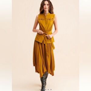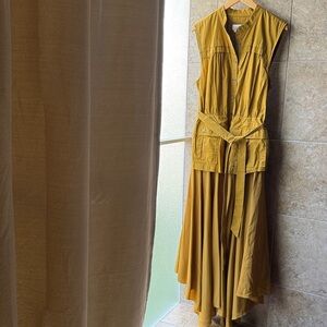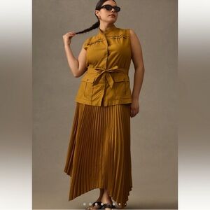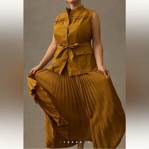 Anthropologie Sleeveless Vested Pleated Midi Dress XL Utility Pockets Self Belt