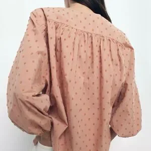 ZARA Swiss Dot Blouse with Voluminous Sleeves