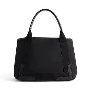 Balenciaga Small Cabas Tote Black Canvas Leather Designer Handbag Authentic