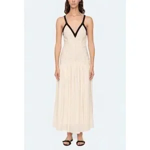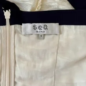 NWOT SEA New York Off-White Midi Silk-Blend Ruched Tatum Dress