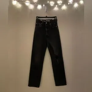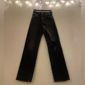 Classic black straight leg jeans. Versatile and stylish. Perfect for everyday wear.