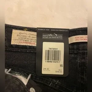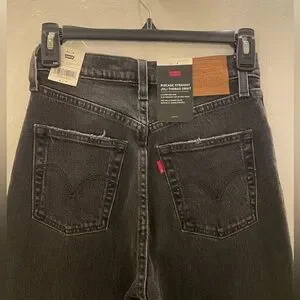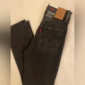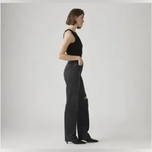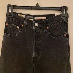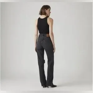 Levi's Ribcage Straight Joli Thorax Droit Button Fly Dark Black Wash Jeans NWT