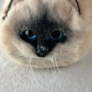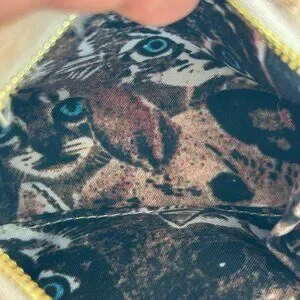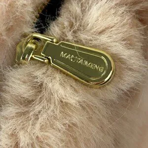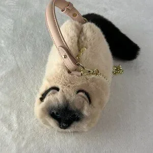 Adorable plush cat crossbody bag in cream and black. Perfect for adding a playful touch to any outfit.