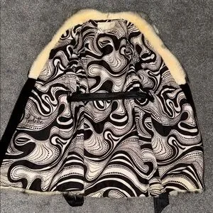 Step out in style with this chic faux fur teddy jacket. Featuring a bold black and cream pattern, it's perfect for adding a touch of elegance to any outfit.