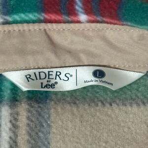 Riders by Lee Women's Large Green and Red Plaid Fleece Button Up Shirt