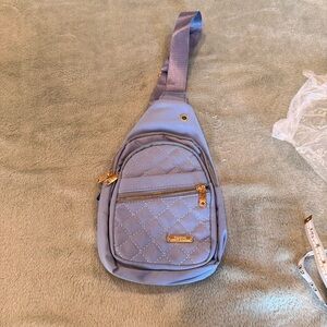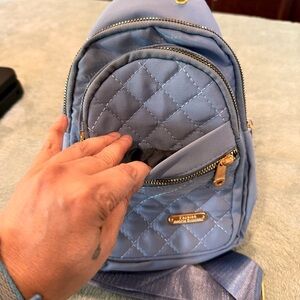Quilted blue Crossbody Sling Bag with Gold Hardware