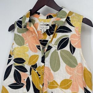 Rachel Zoe Linen Sleeveless Shirt Dress Shift Tropical Print