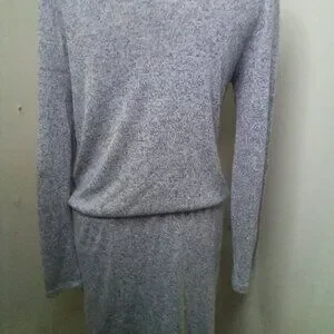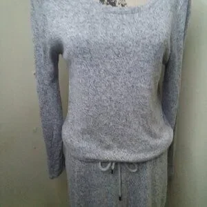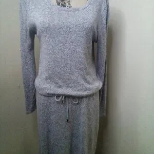 Gap Dress Women XS Long Sleeve Elastic Drawstring Waist Soft Stretch Gray Black