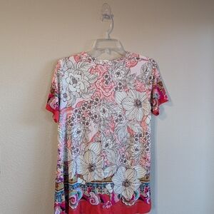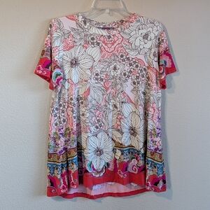 Johnny Was Size Medium Multicolor Floral Short Sleeve Top T-shirt