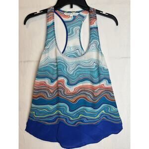 Trina Turk Multicolor Patterned Silk Agate Caspian Swirl Wave Racerback Size S