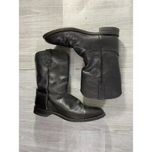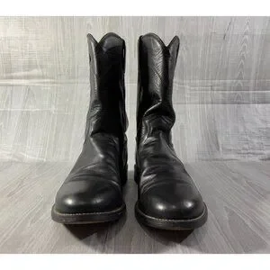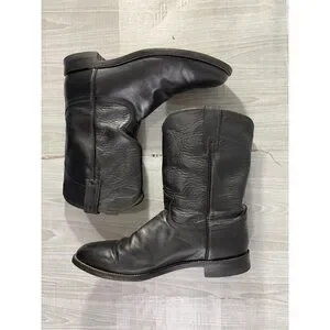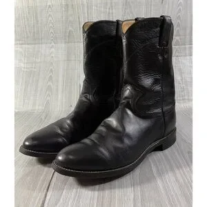 Justin 3133 Leather Roper Cowboy Boots 10.5 D color black USA