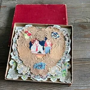 Vintage 1900’s lace Die-Cut Heart Shaped Valentine card