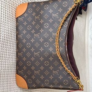 Stylish fashion bag crossbody shoulder bag. Features iconic monogram pattern. You can adjust straps to be shorter or longer Tan accents add elegance. Gold chain detail enhances luxury. In brand new condition. Comes with dust bags all sales are final ❤️