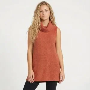Papillon Cowl Neck Sleeveless Tunic Sweater Medium Terracotta Burnt Orange Knit