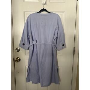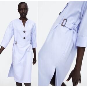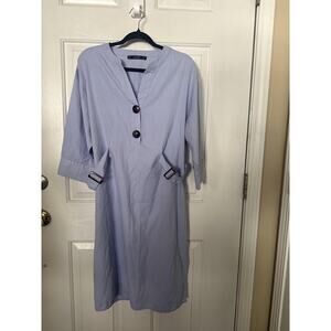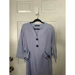 Zara Dress Womens XL Blue Belted Shirt Midi Henley 3/4 Sleeve Work Office