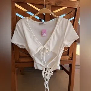 A3 Designs White 3 Tie Front Ribbed Womens Tank Top